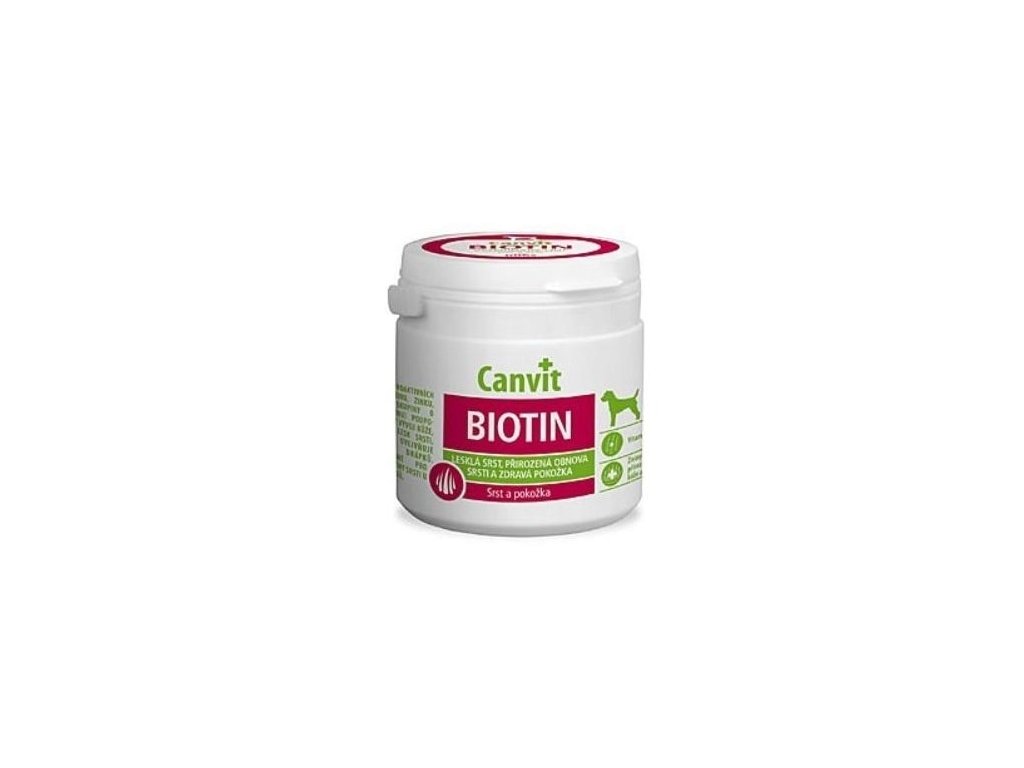 Canvit Biotin je komplex proaktivních látek (biotinu, zinku, vitamínů skupiny B a methiotinu) podporuje zdravý vývoj kůže, kvalitu a lesk srsti, pozitivně ovlivňuje rohovinu drápků. Doporučujeme pro období výměny srsti u línajících psů. Vhodné pro psy do 25 kg - především dlouhosrsté psy, bílé psy, línající psy, psy u nichž je vyžadována vysoká kvalita srsti a perfektní vzhled. Doporučené denni dávkováni: 1 tableta na 5 kg hmotnosti psa Složení: Sušená laktoza, glukóza, pšeničny škrob, sušené pivovarské kvasnice, uhličitan vapenatý, sušené odstředěné mléko.Doplňkové parametry