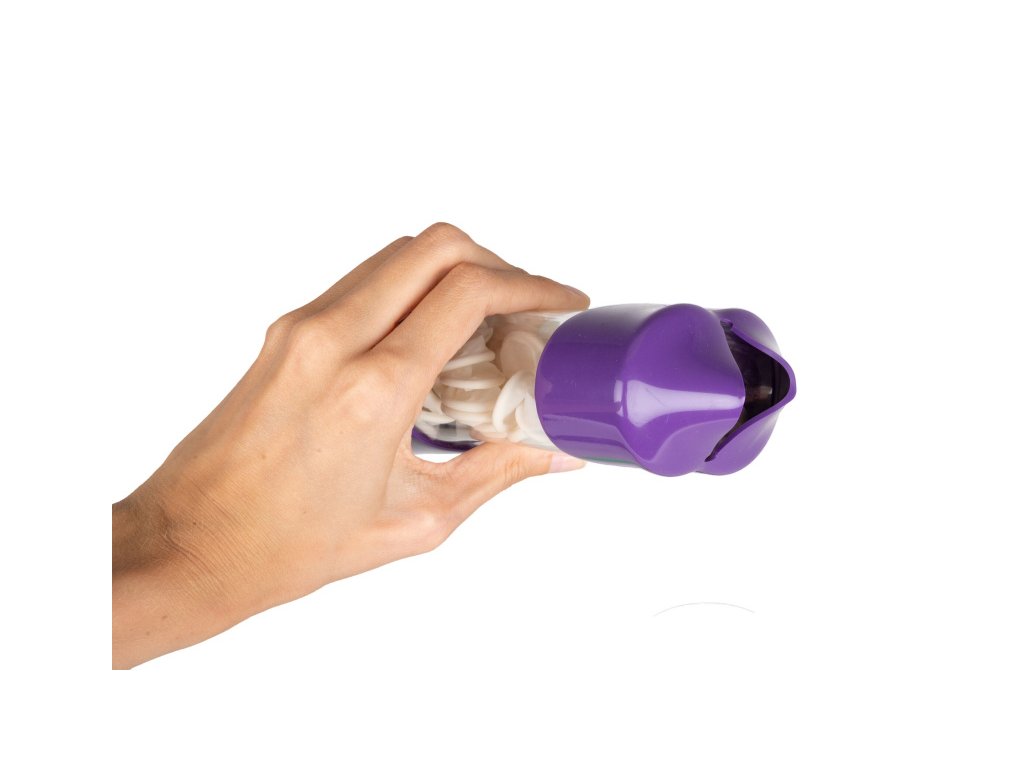 Měkká plastová nádobka se štěrbinou na gumičky, trimovací náprstky nebo psí pamlsky. Dodáváme v různých barvách podle zásob na skladě-Dodatočné parametre